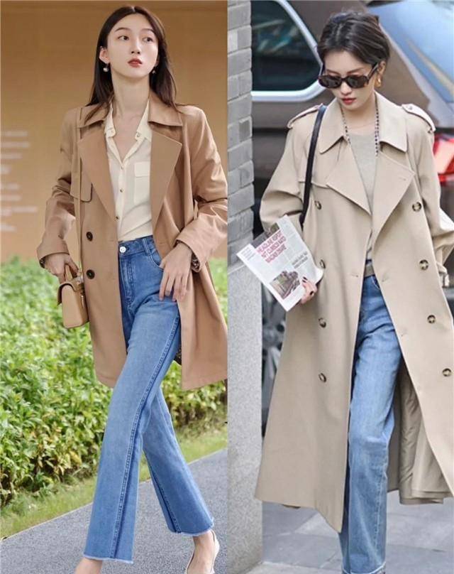 此外,选风衣还可以搭配不同的裤子,比如直筒裤,而直筒牛仔裤最大的特点那就是它的包容性强,无论你的腿型是粗还是细或者是小腿肌肉多,都可以完美驾驭。
