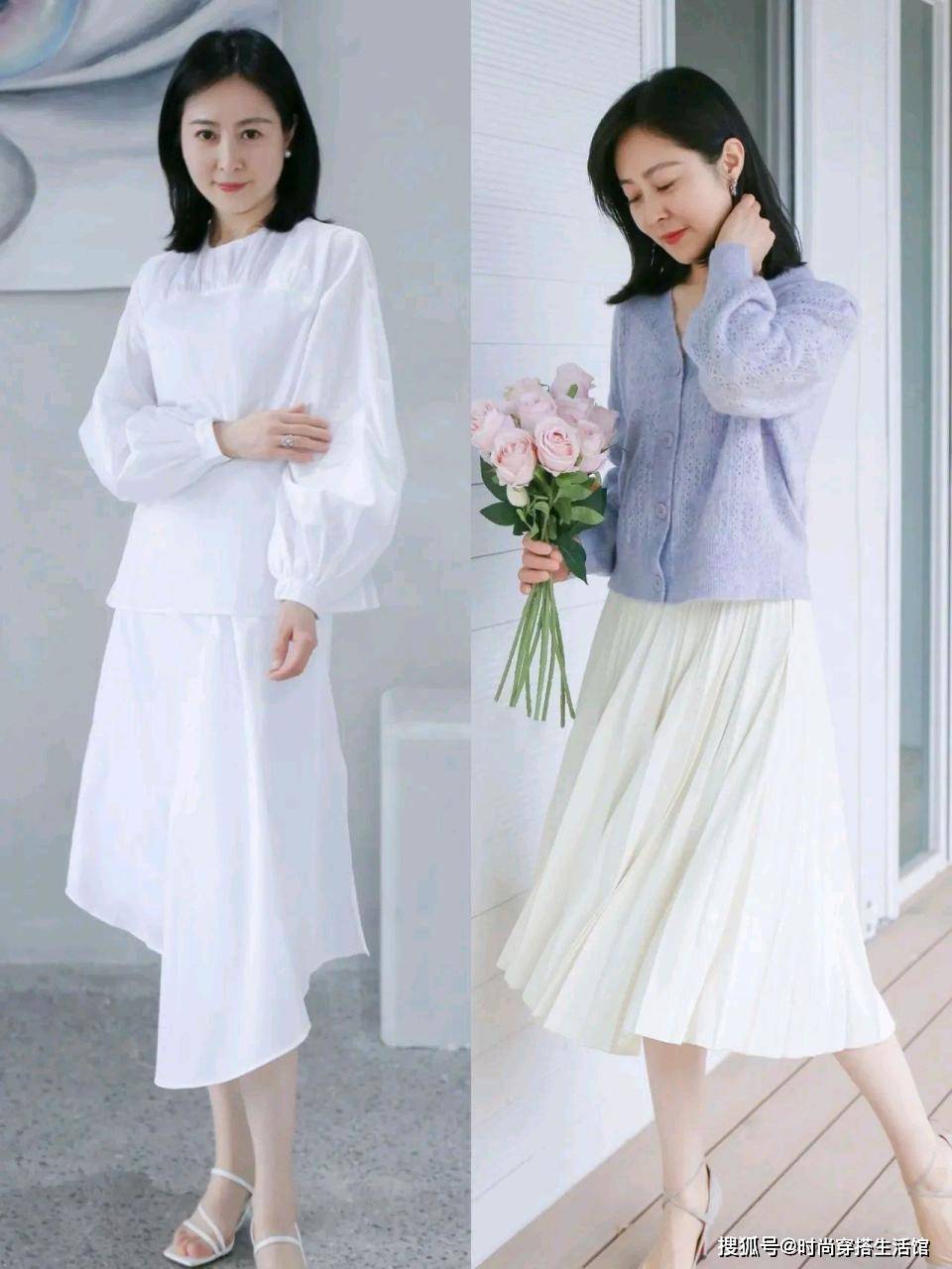 印象中的百褶裙往往以短款形式出现在校园中,似乎和中年女人的年纪不符,其实并非如此。百褶裙的褶皱既能承载少女的青春活力,也能发挥年长女性的气场优势,打造减龄年轻态。