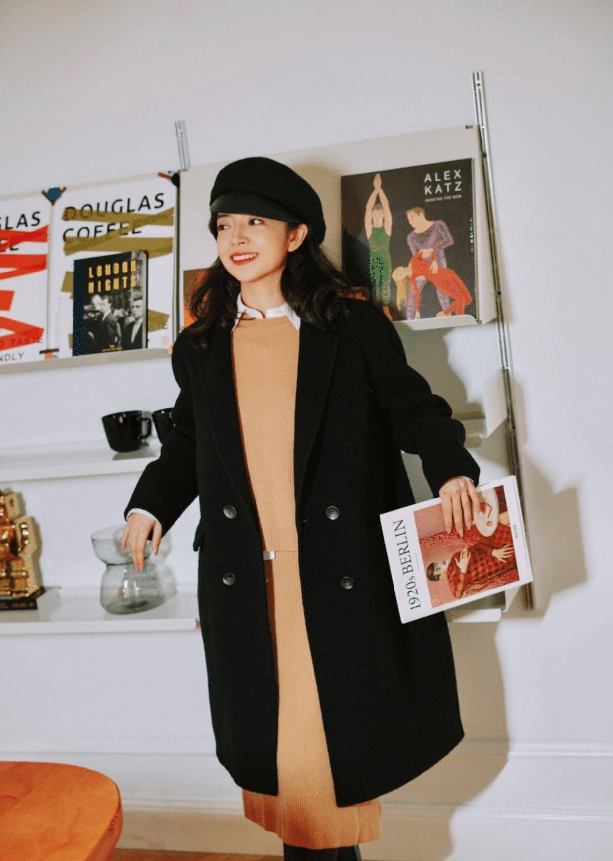 一、黑色大衣搭配帽子