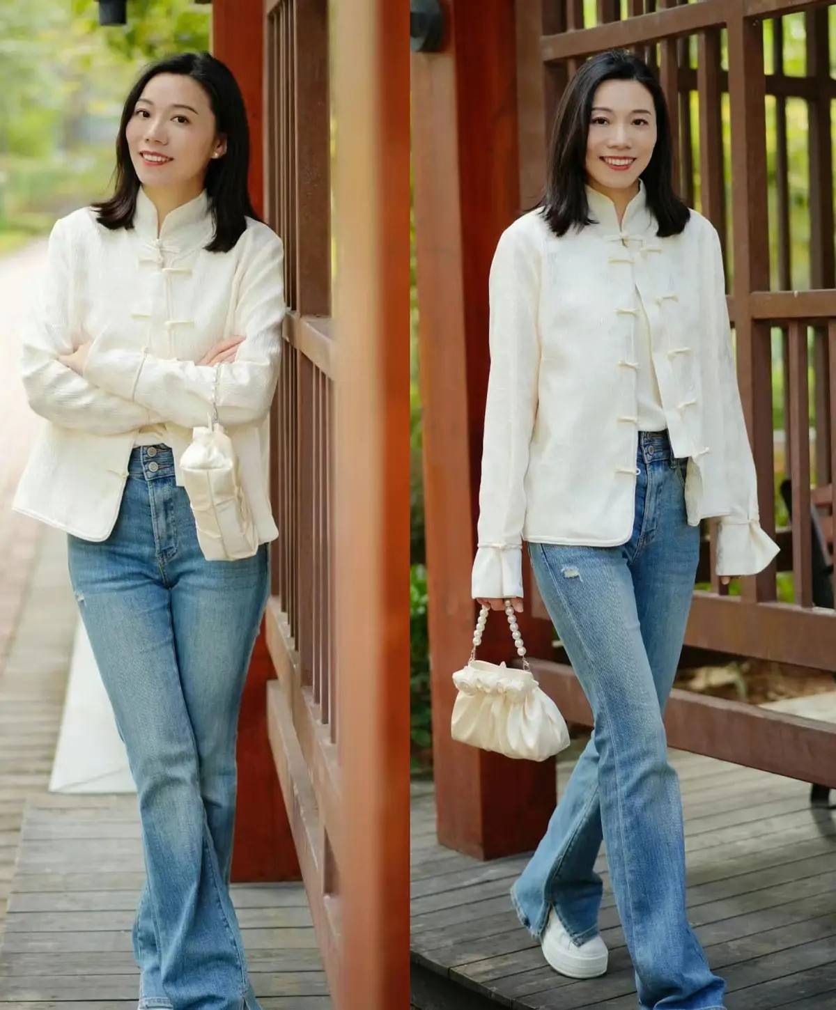 选择一款白色或米色的新中式外套,搭配一条宽松的长裤或半身裙,既能彰显古典韵味又不失现代时尚感。