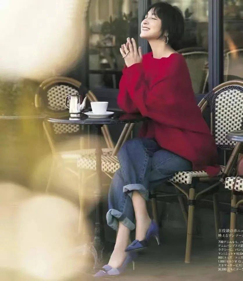 简约又不简单。在舒适与时尚之间有一种完美的平衡感。纯色毛衣搭配蓝色的牛仔裤,增添了一份清新与温柔。非常适合春天的气候。