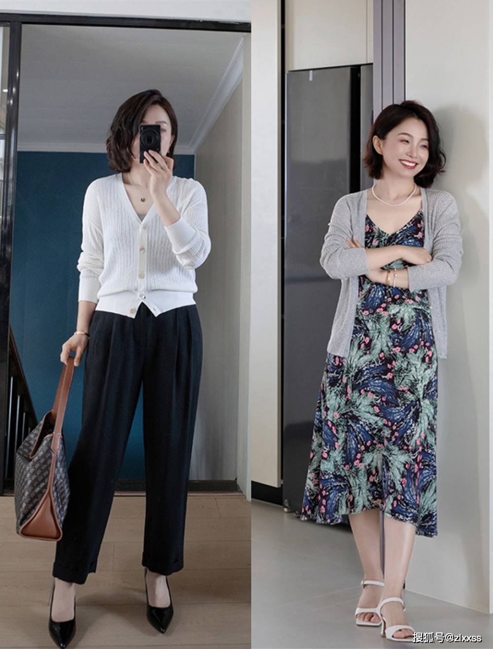 我们可以短款开衫+修身裤/半身裙的组合,脚上踩着一双尖头鞋或者是高跟凉鞋,让身为小个子的你,也能产现出三七分的身材。