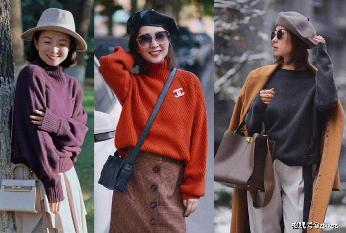 在搭配的时候,我们可以借助羊毛衫、与半身裙/裤的叠穿搭配,来打破单一的风格,再以与半身裙/裤子同质、或是同色的帽子巧妙点缀,能够让你的造型更加完美。