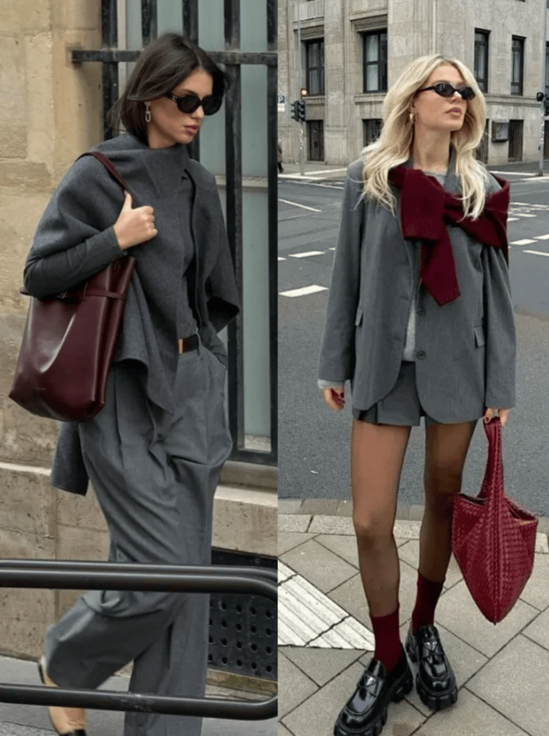 今年秋季,安可拉红以其独特的魅力迅速成为流行色的焦点,而当它与经典灰色相遇时,更是将高级感推向了新的高度。