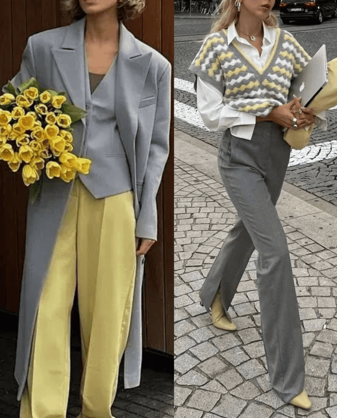 灰色的沉稳为黄色的张扬提供了坚实的支撑,而黄色的活力则为灰色的内敛注入了新的生命力。这种搭配不仅打破了单一色彩的沉闷感,更在视觉上形成了鲜明的层次感,使整体造型更加丰富多彩。