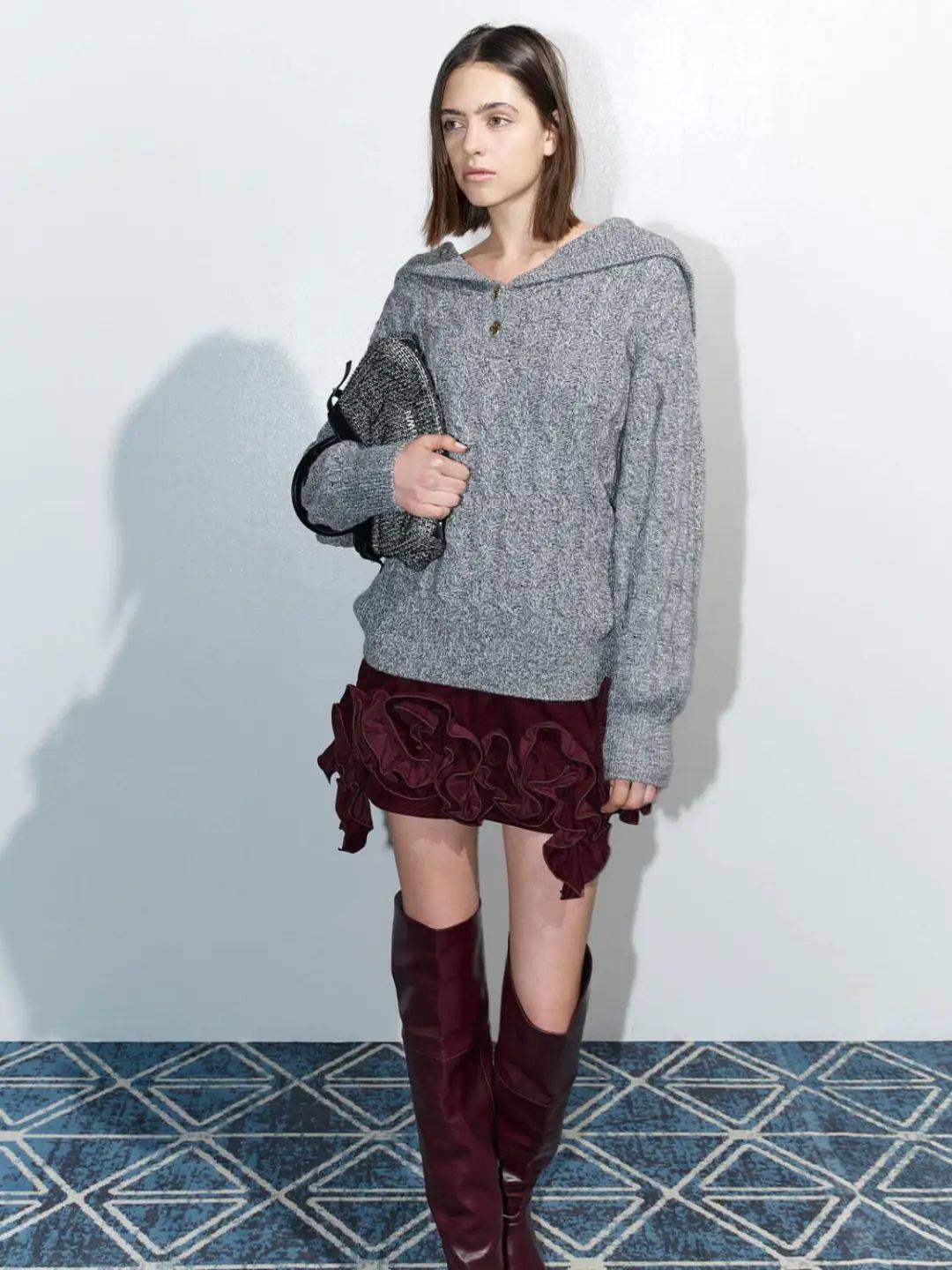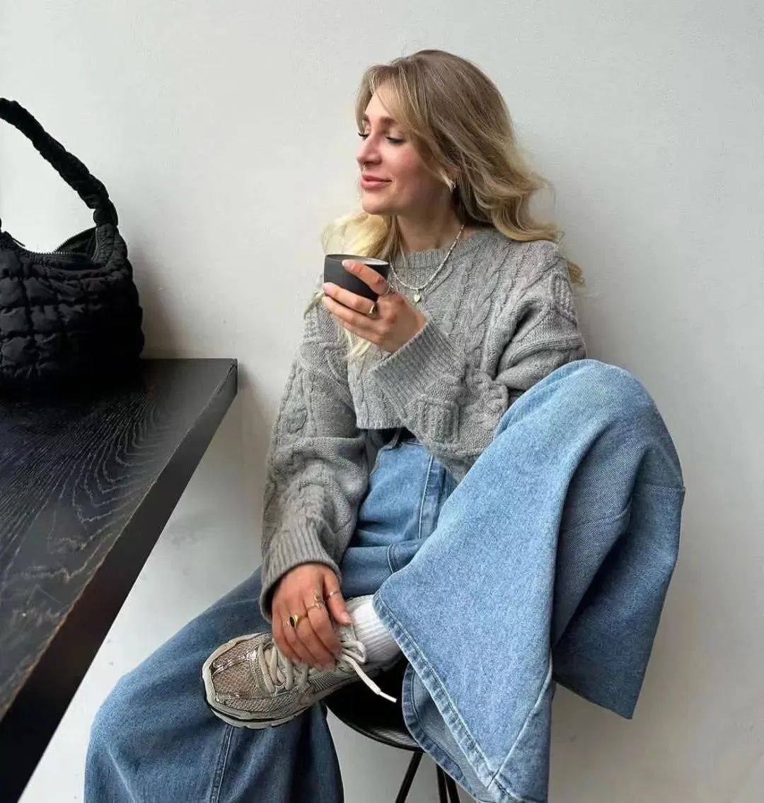想要穿出松弛感,可以给灰色的毛衣叠穿白T\白衬衫\白色高领衫,简单的灰白配色,怎么穿都不过时,非常耐看的配色。
