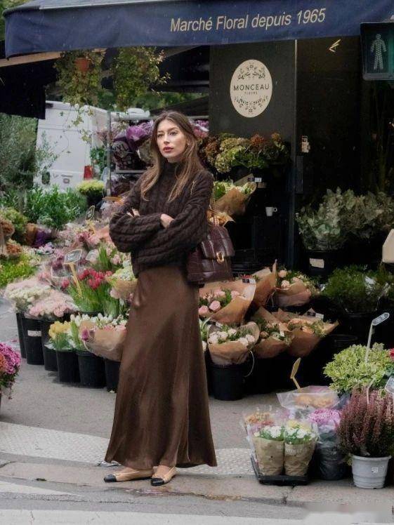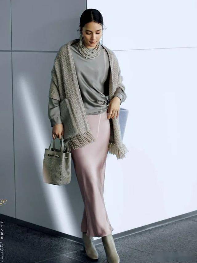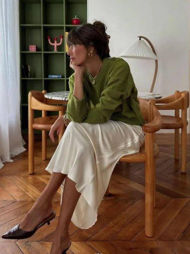 选择醋酸面料的缎面裙更耐造,搭配毛衣或外套,不经意的亮眼,chic感满满。