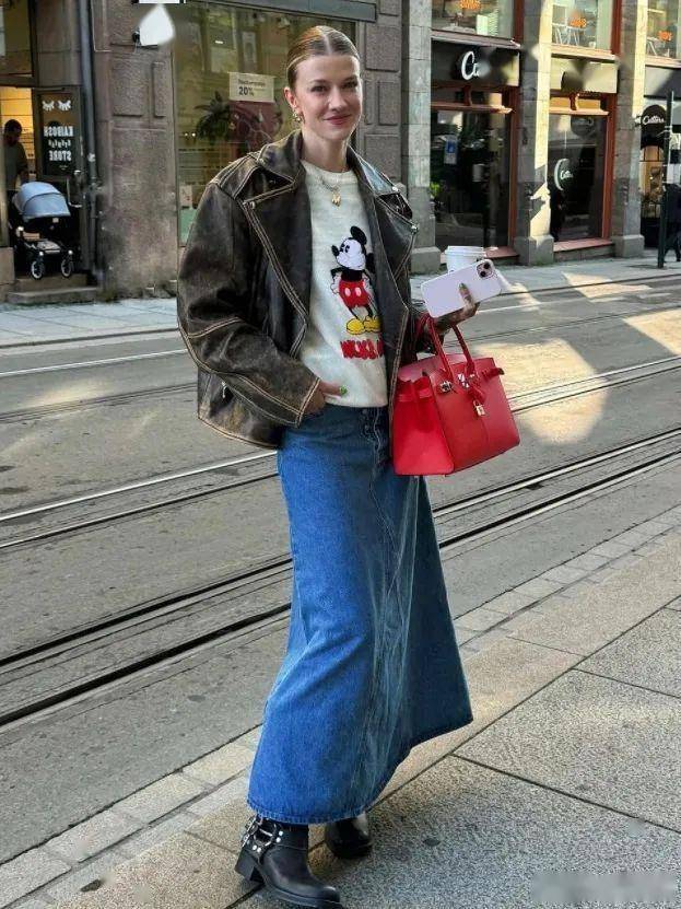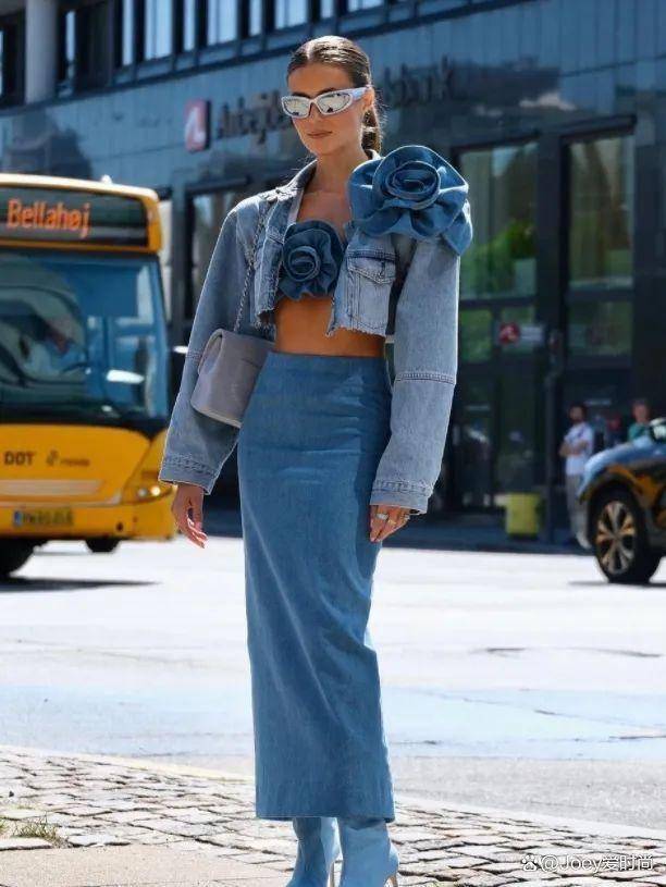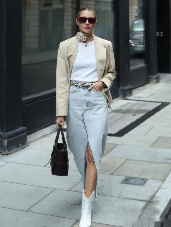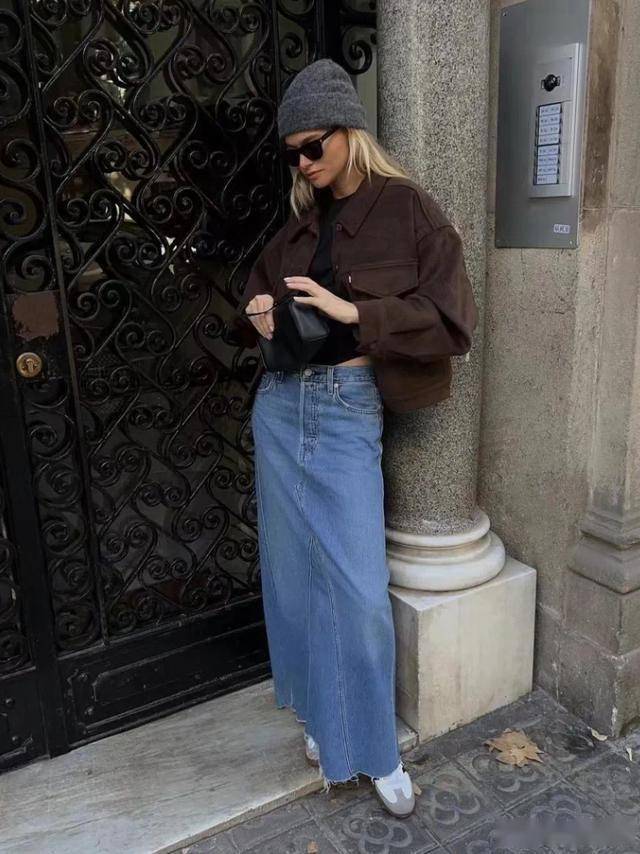复古半裙还少不了牛仔丹宁,火了100年的独特质感,怎么搭都好看。