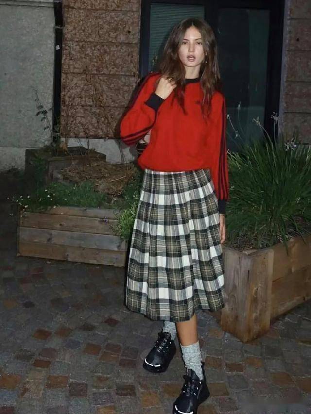 格纹半裙便是其中最具辨识度的存在,知识分子风与学院风的最爱,复古减龄的气质,总能第一眼被关注到。