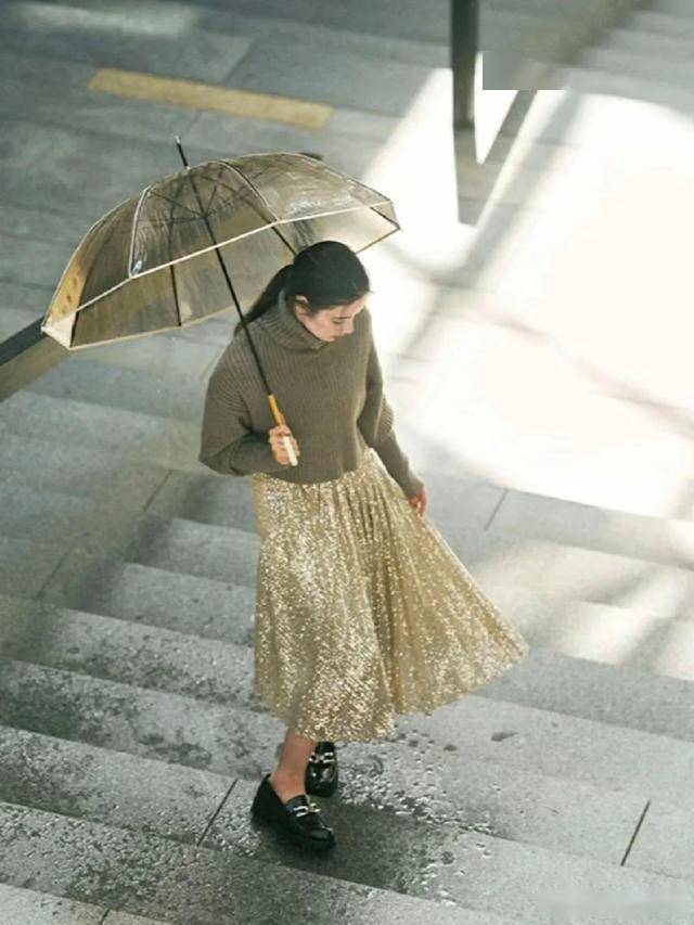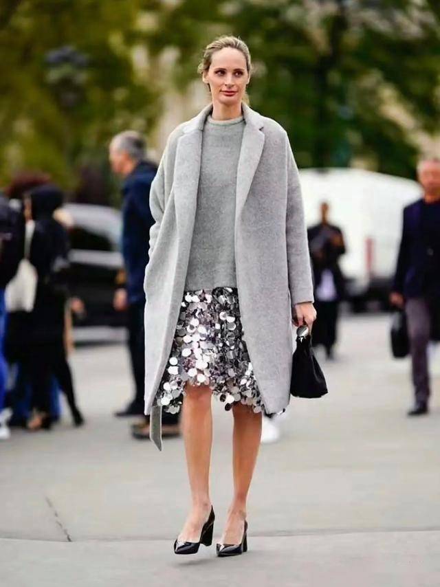 沉闷的季节,衣着若想尝点鲜,搭配上一条亮片裙,便能轻松穿得出彩。