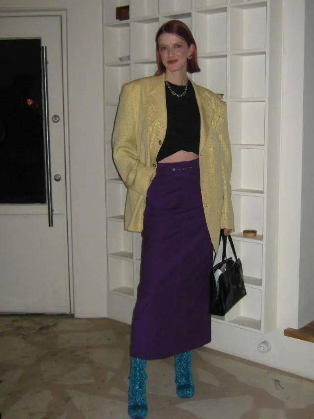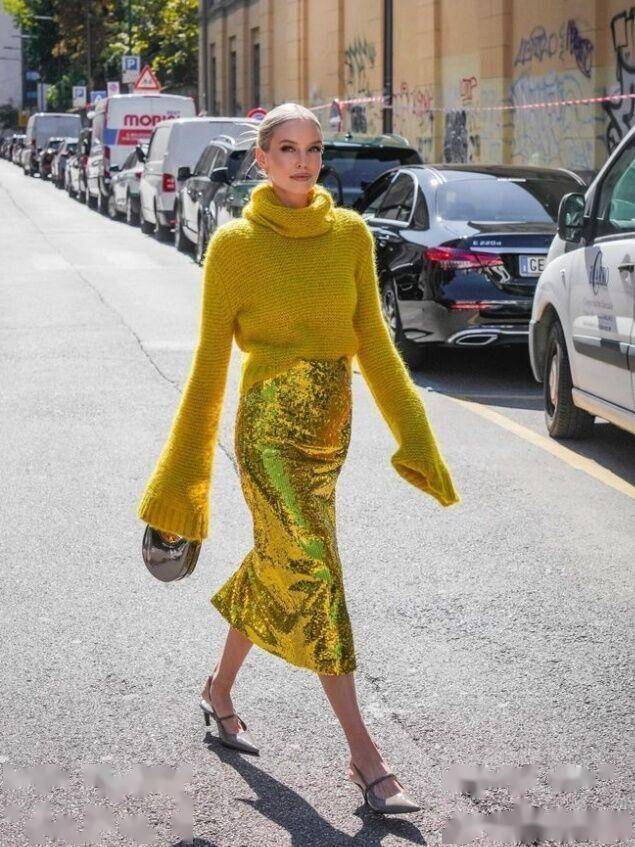 亦可选择一条亮色亮片半裙,尽管全身搭配普通,这一件单品就足够吸引眼球。