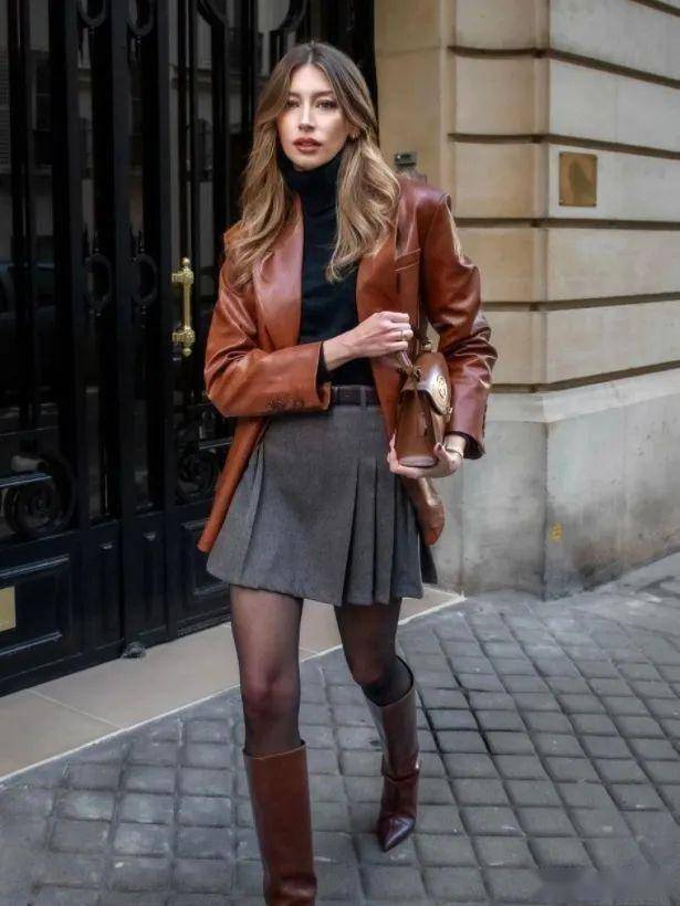 拥有减龄活泼的气息的短款百褶裙,在冬季也美成了一道风景线,有种复古学院风的调调,带来别样的气质氛围。