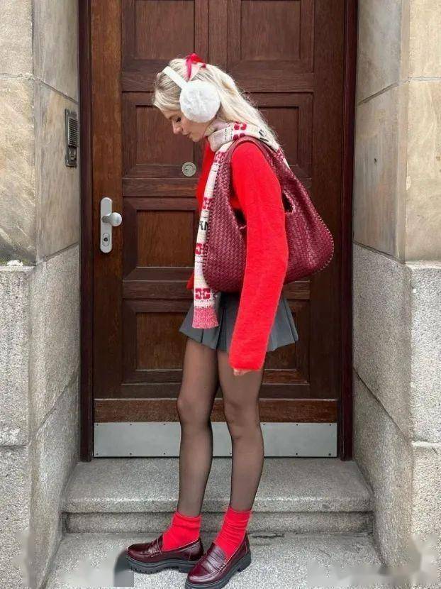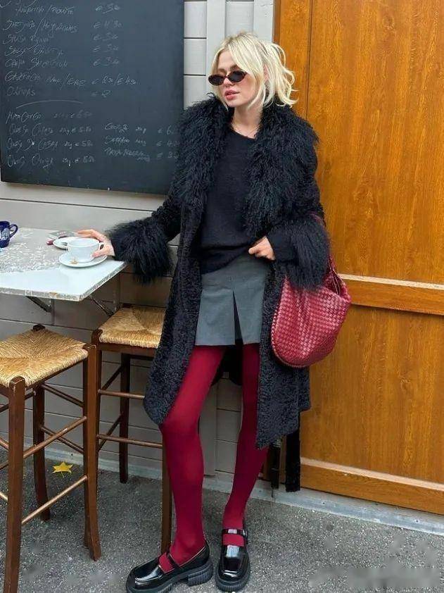 十分推荐黑白红格纹,复古百搭好驾驭,亦能轻松穿出节日氛围,只需保证全身视觉的完整流畅即可。