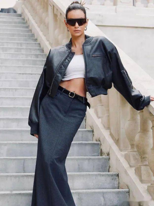 摩登而个性的皮半裙,光泽质感自带气场,不再局限unisex,皮伞裙、皮短裙都能很好地诠释优雅。