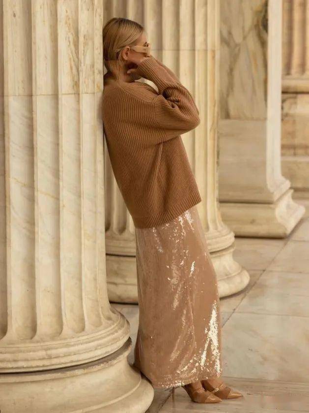 即将到来的双旦、新年,穿上一条亮片半裙,精致的氛围感油然而生。