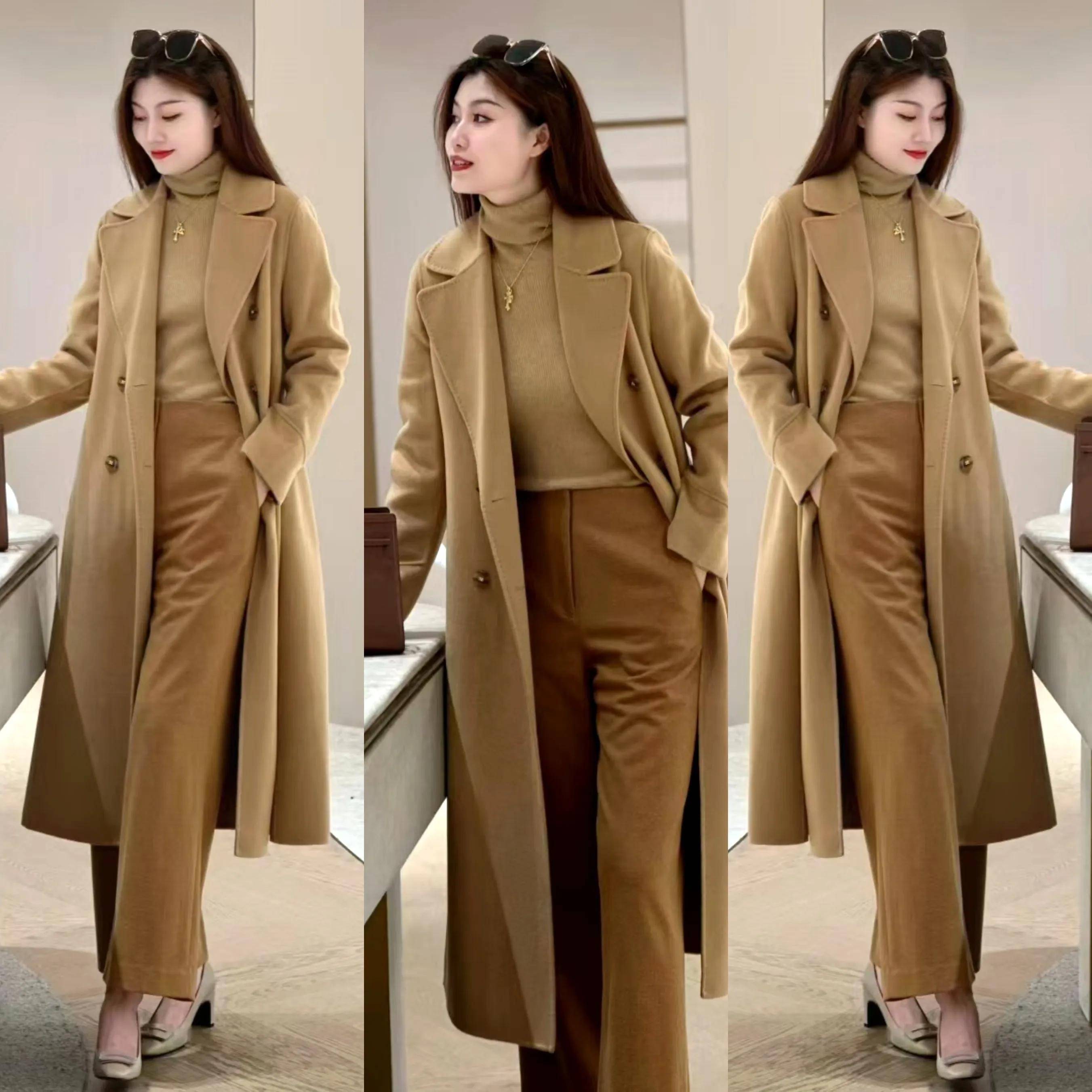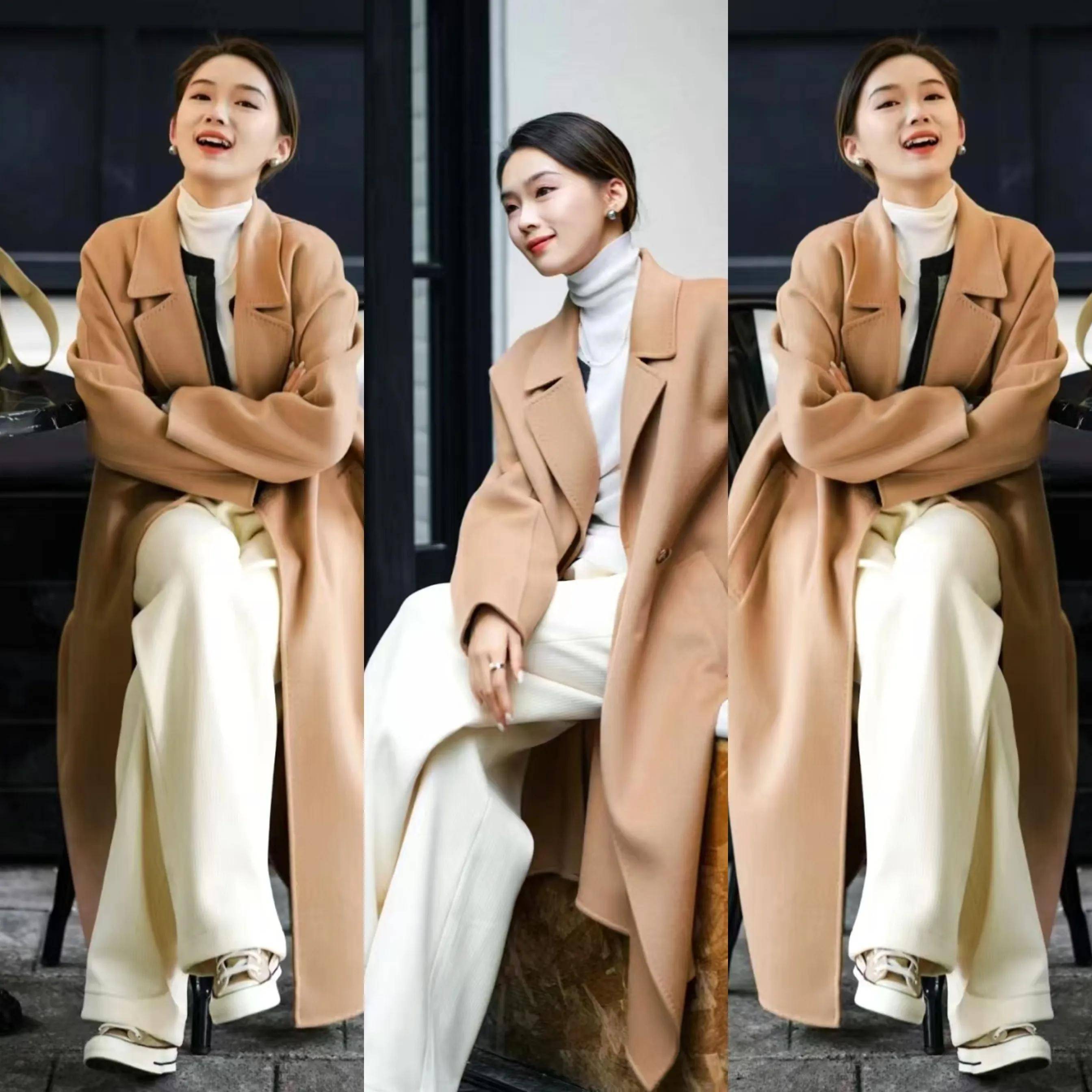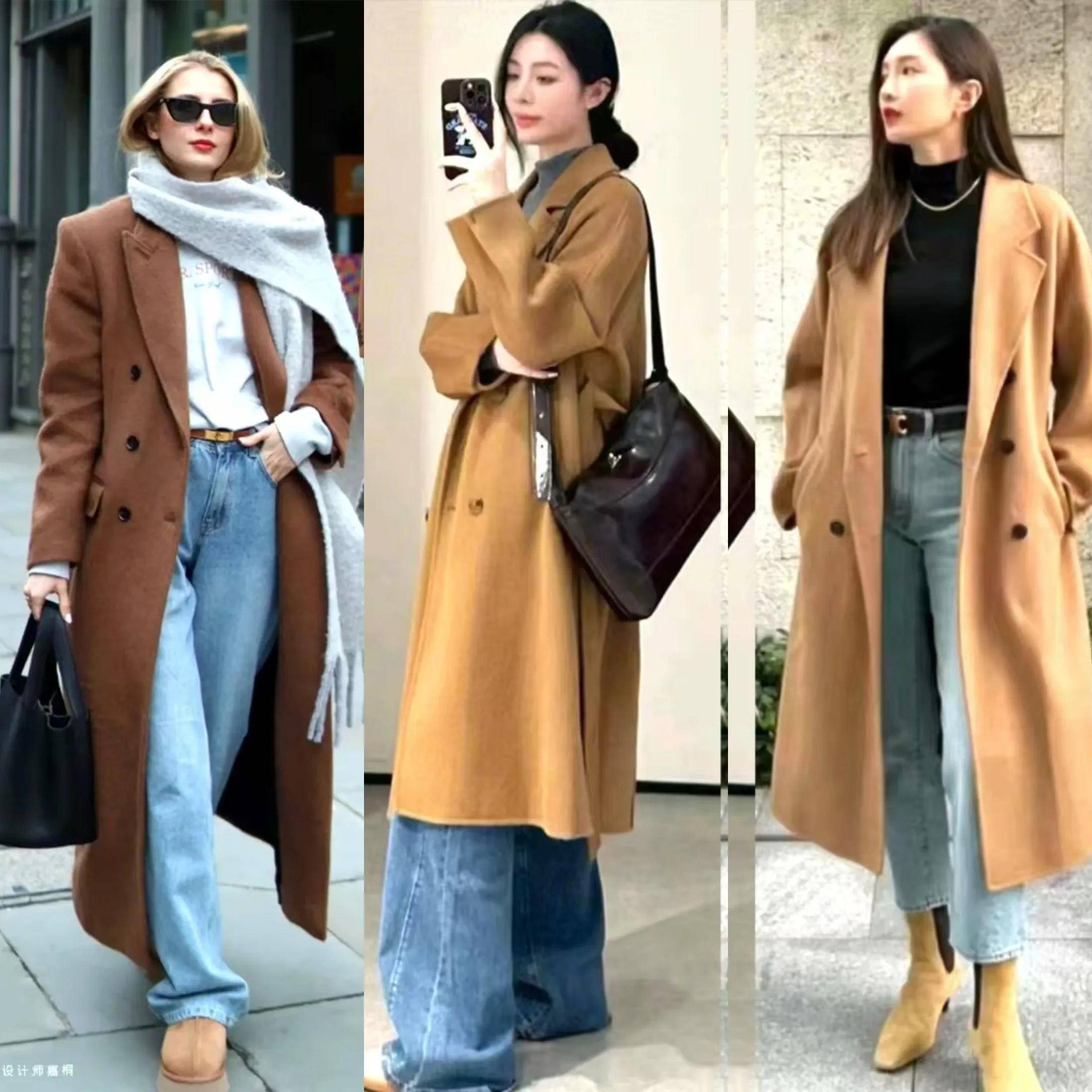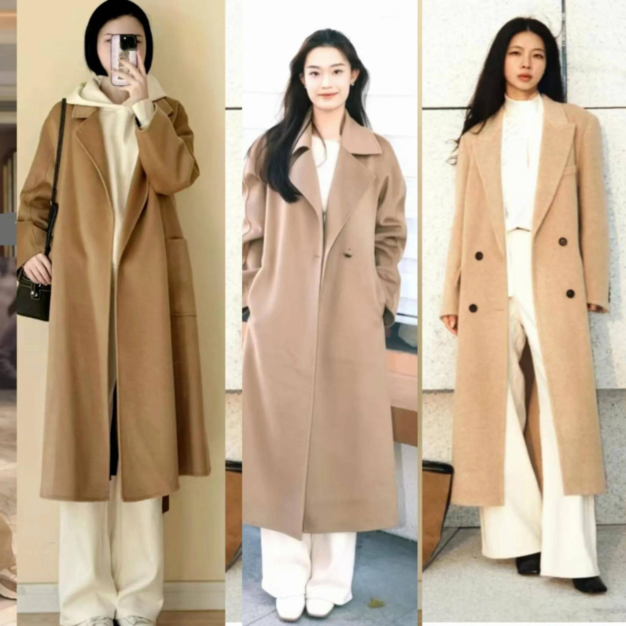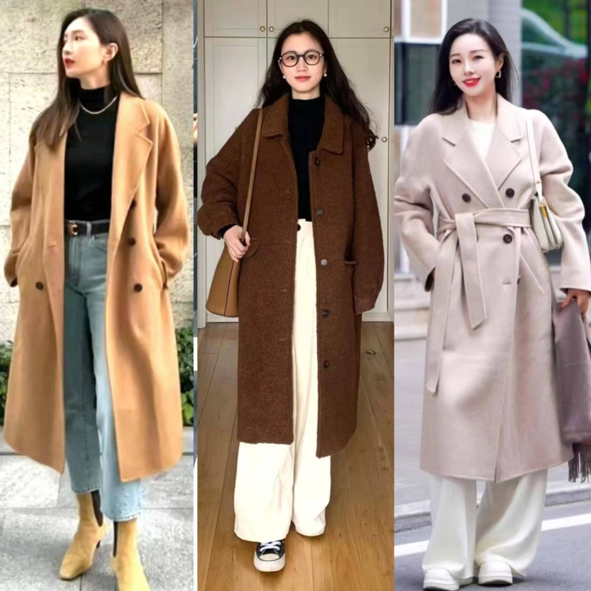 对于肤色偏黄的女性,建议选择颜色偏浅或偏红调的棕色大衣,比如驼色、焦糖色等,有提亮肤色的视觉效果。再搭配浅色内搭穿着,效果更佳。