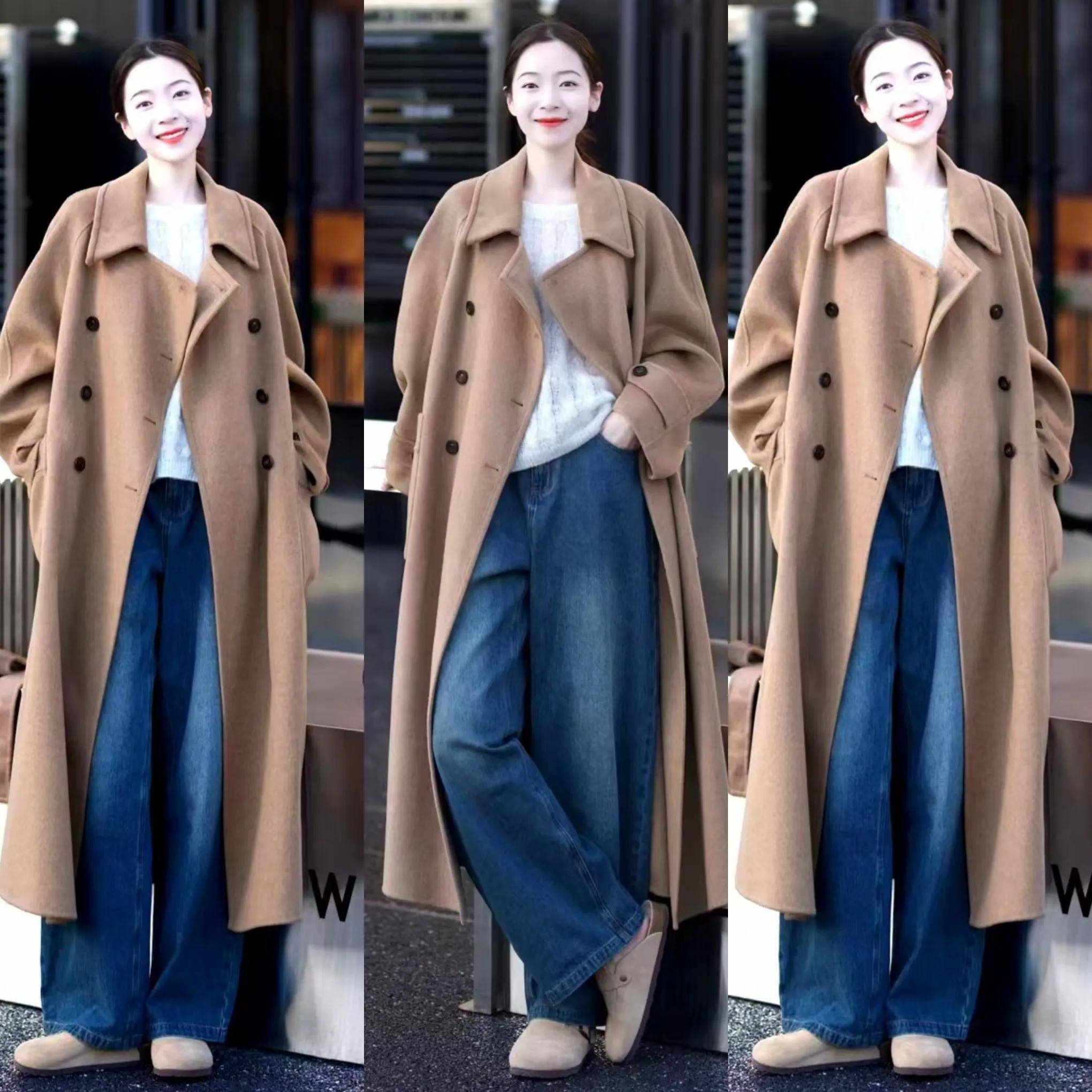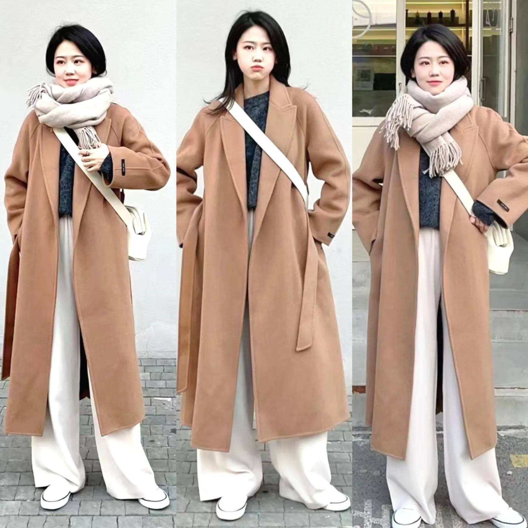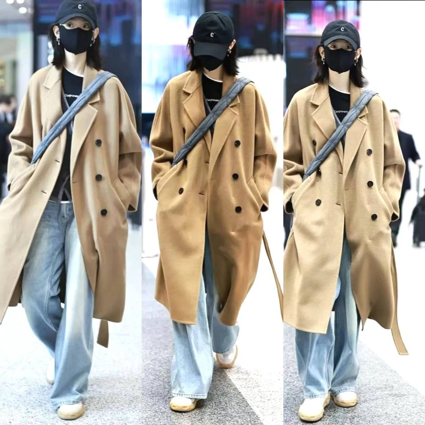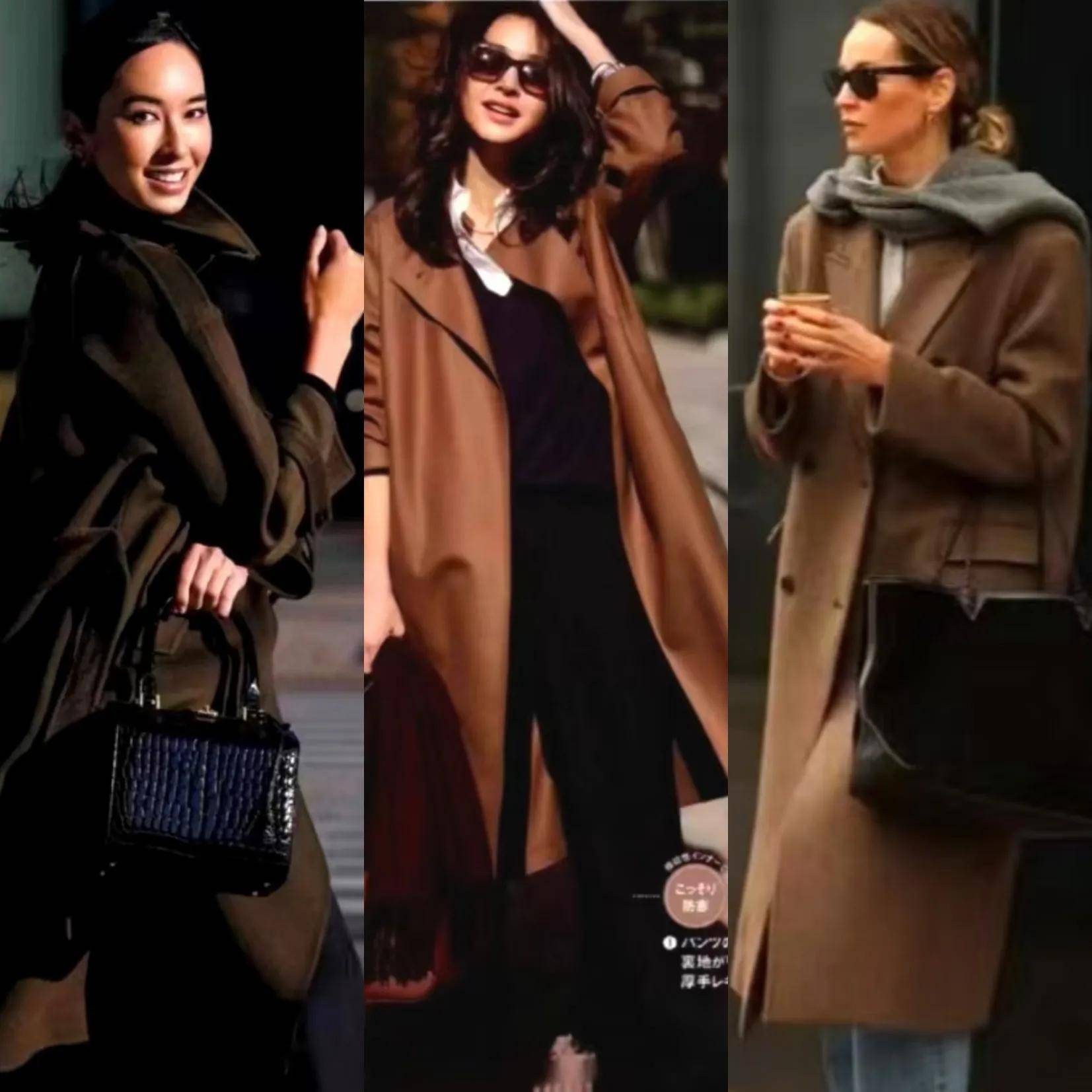 如果身高在165cm以上的高个子女性,长度到小腿肚或脚踝处的长款大衣,能更好展现自己高挑的身材,以及棕色大衣给人带来的高级与大气。
