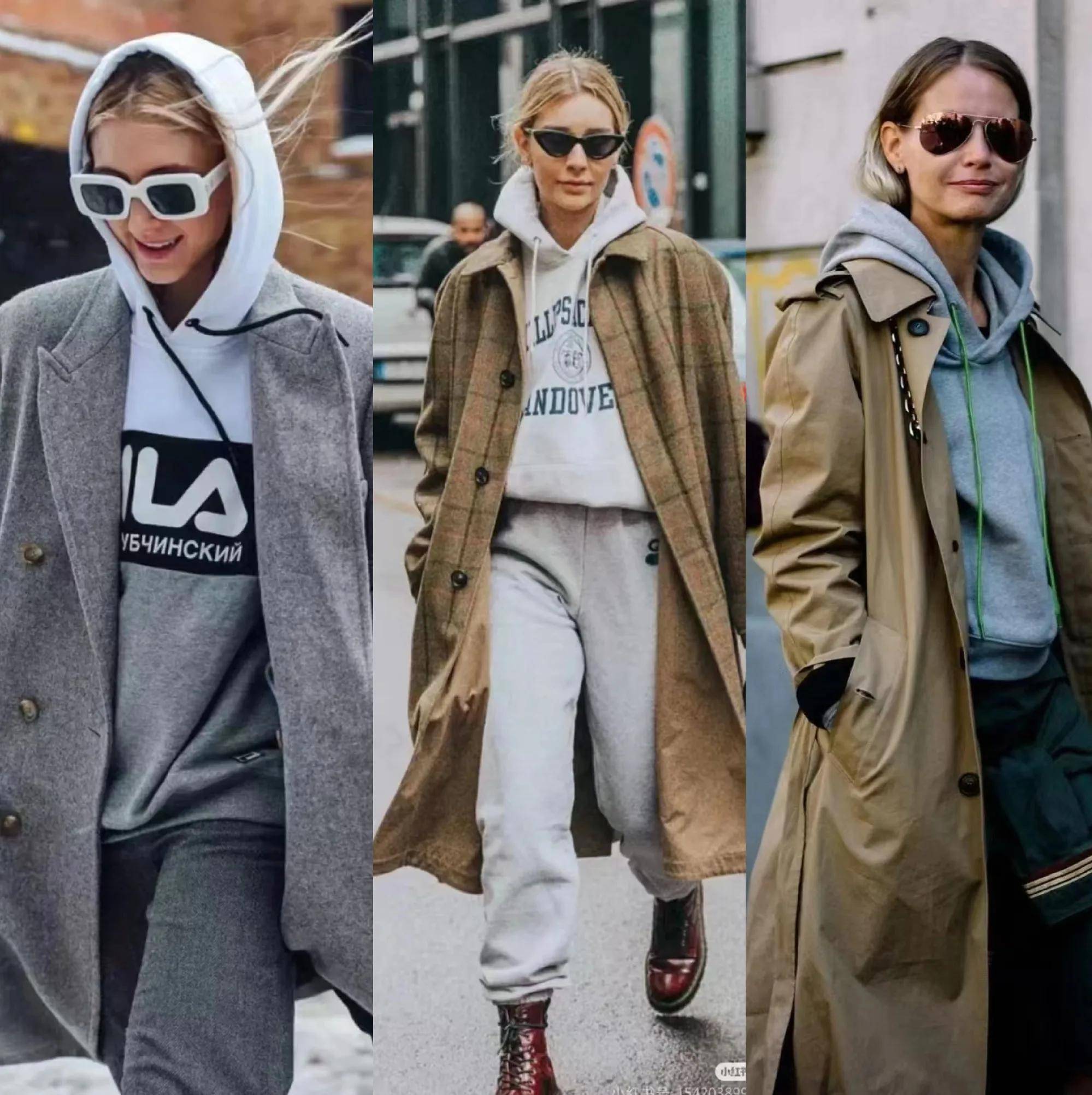 灰色卫衣是秋冬季节的时尚单品,如果选择灰色卫衣做大衣内搭,并把卫衣帽子放在大衣领子外面,增加造型层次感,搭配棕色短靴,休闲时尚显年轻。
