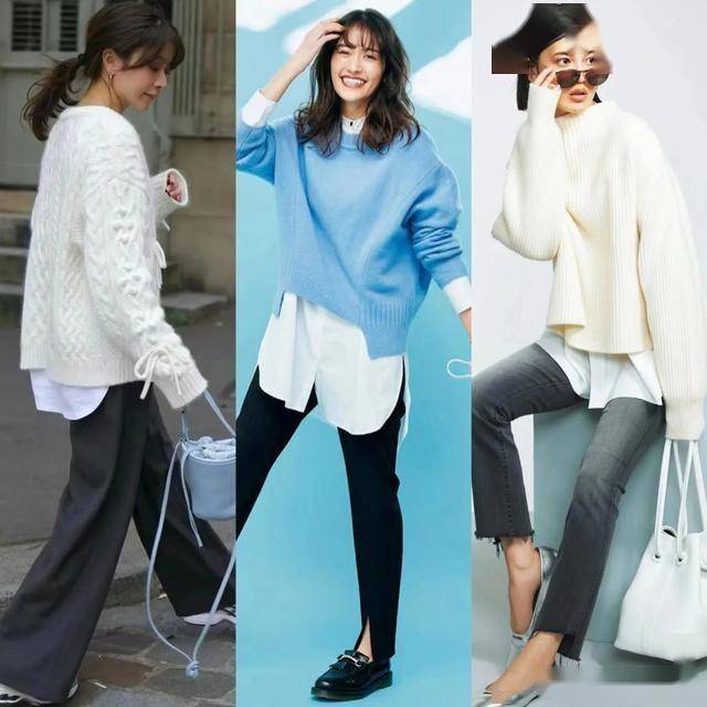 毛衣与长款的白衬衫叠穿起来,层次感更分明,对于屁股大腿粗的女生格外友好,可以完美遮住我们的小缺点,显高显瘦。