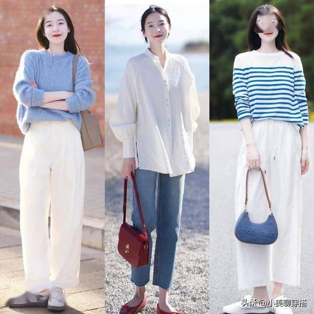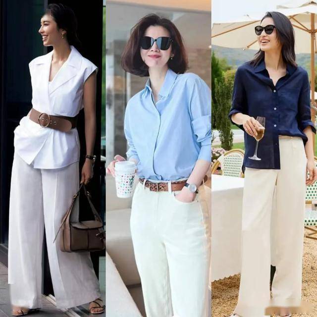 对于职场的优雅女生来说,白色的阔腿裤或是白色烟管裤,与衬衫搭配起来,彰显出知识女性利落与清新感,减龄又时髦。 水蓝色衬衫,简洁利落,搭配白色烟管裤,干净的配色加上爽利的造型,会让自己看起来更具优雅气质,同时又彰显出盐系风的青春感。 白色西装衬衫搭配白色阔腿裤,单一的白色搭配起来高级感拉满,很适合正式的场合,气质爆棚。