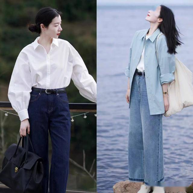 干净的配色 春天总是明媚而浪漫的,可以多尝试一些的干净的配色,让自己看起来更温婉可爱,充满了青春的活力与优雅的气质。 简单的白衬衫搭配牛仔裤,配色清爽干净,看着特别舒服,有着青春的魅力,让人眼前一亮。