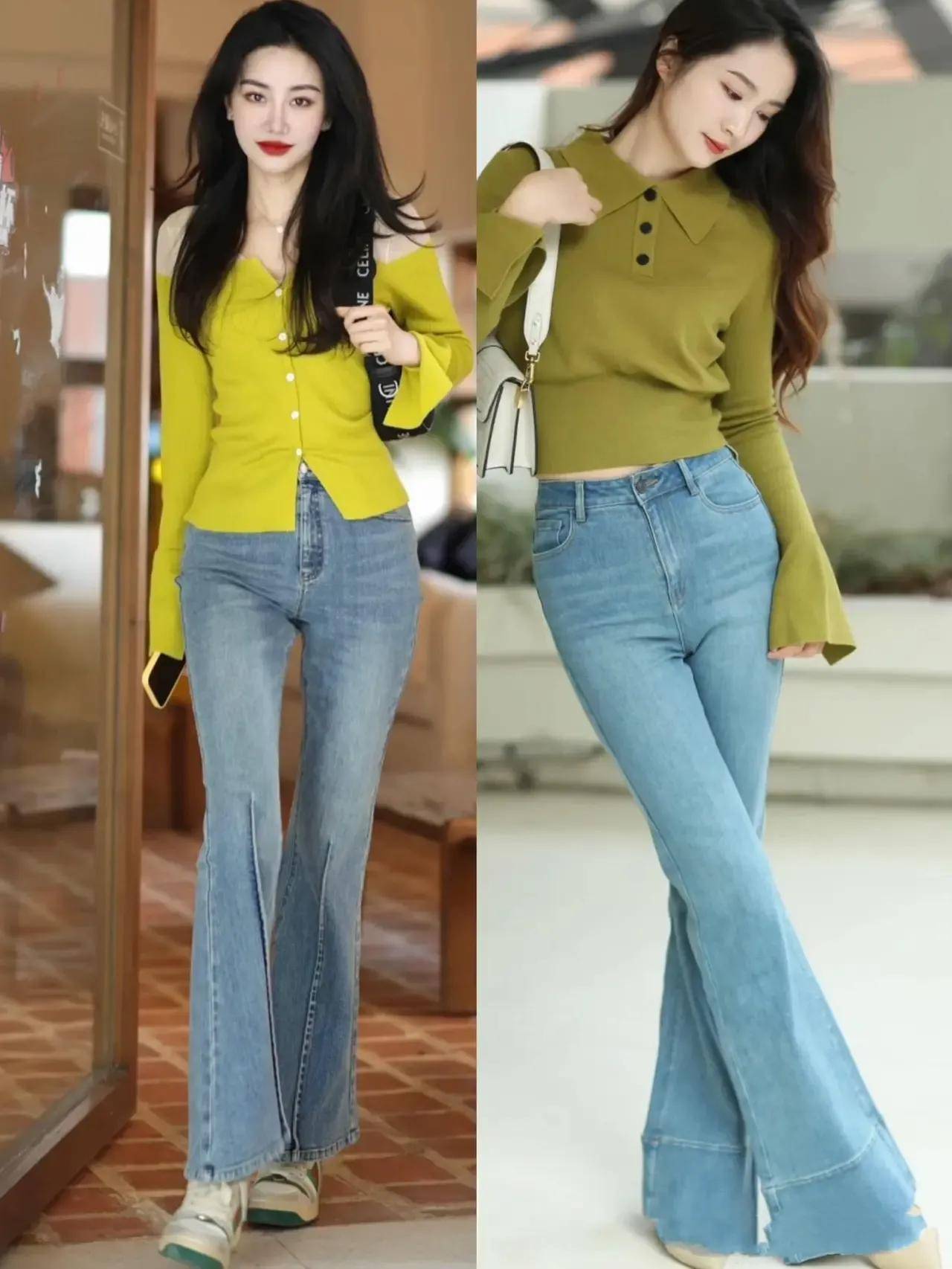 当然,如果你一直坚持健身,保持着匀称的身材比例,完全可以尝试一些更具时尚感的搭配。例如,黑白条纹的针织短袖与开叉牛仔裤的搭配,再配上一双棕色粗跟单鞋,精致而不失大气,这样的穿搭便能让你在人群中脱颖而出。