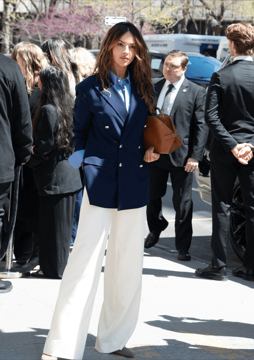 白色的魔力其实就是在于它的包容性。当全身色调过于沉闷时,一条白色裤子就能让造型呼吸起来;当色彩搭配过于跳跃时,它又能巧妙平衡视觉冲击。这种“四两拨千斤”的搭配智慧,正是海军风最迷人的精髓所在。