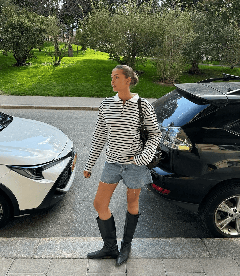宽松的上衣+利落的白色下装,立刻穿出毫不费力的时髦感,再搭配一双酷帅有型的筒靴,瞬间勾勒出慵懒的法式氛围。金属色系的配饰更是提升精致度的关键,这些小细节能让普通的基础款瞬间摆脱平淡。**4.海军风配饰** 想要打造浓郁的海军风情,除了标志性的条纹衫和双排扣外套,那些充满海洋韵味的配饰更是点睛之笔。