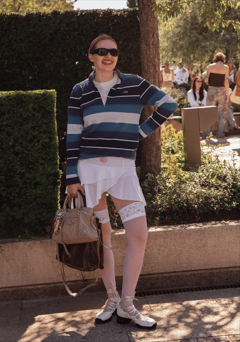 2025年春夏,航海系Navycore穿搭更是强势回归。这一季的海军风不再只是简单的蓝白交响曲,设计师们更注重条纹元素的灵活运用。在此,条纹不受宽窄的限制,也不单单是蓝白两色,它的色彩更加丰富多彩,既承载着航海文化的厚重底蕴,又在现代时尚中焕发出崭新的生命力。