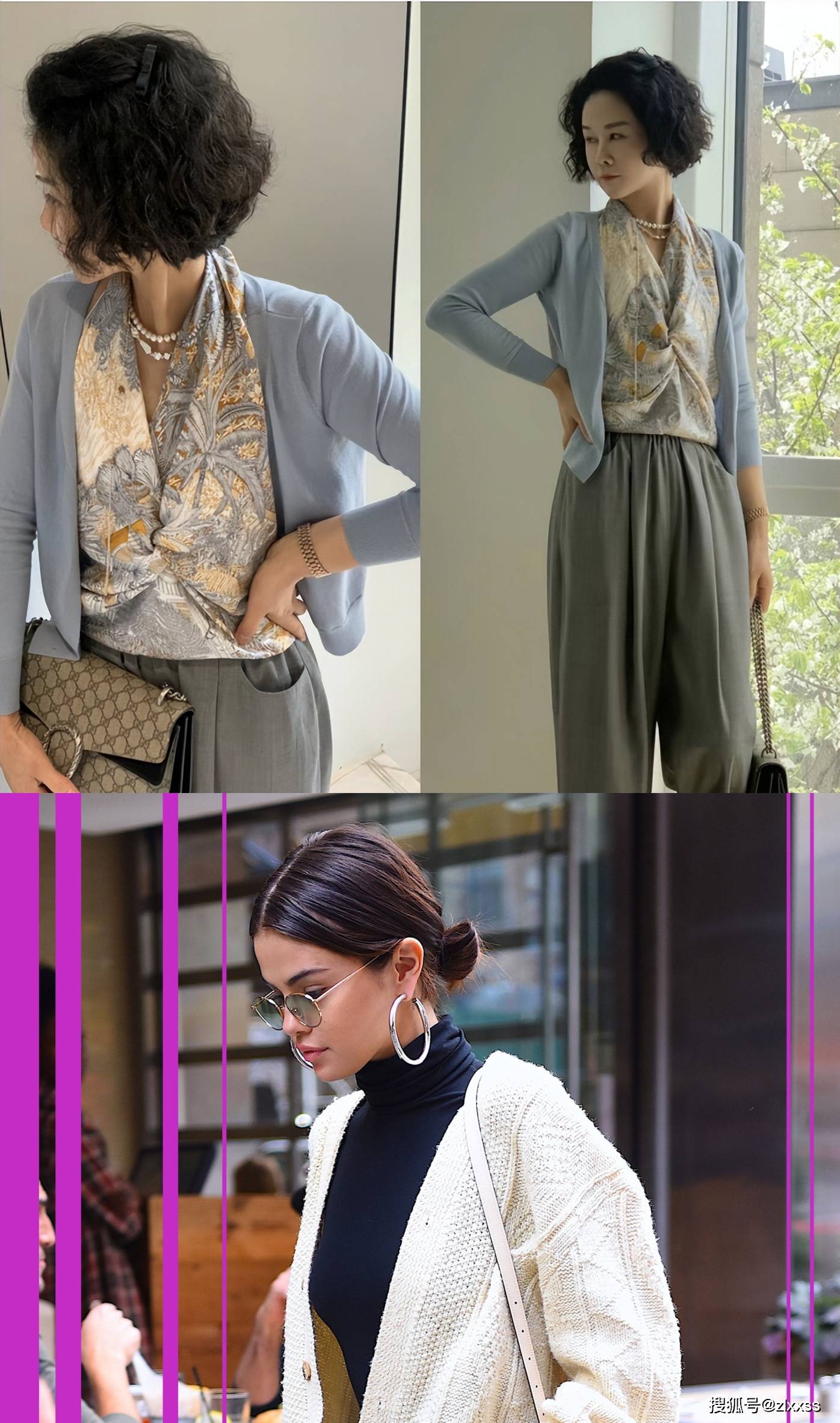 开衫里搭件高领打底衫,露出领口袖口,复古又时髦;在开衫外系条丝巾,瞬间多了几分小女人的温柔;要是在腰间系件小外套,“假两件” 效果直接拿捏,个性值拉满!