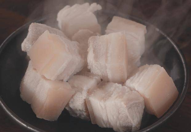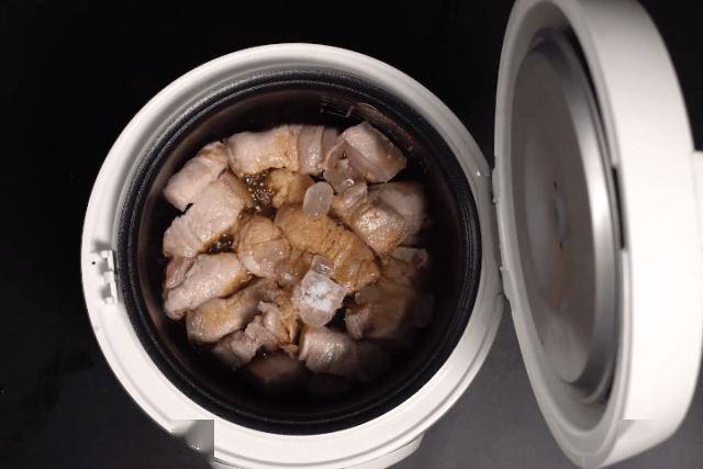 1、焯好水的五花肉,先不要着急放进电饭锅中,先放在凉水中浸泡一会,五花肉遇冷收缩,多余的油脂就被挤出来一些,这样做出来的五花肉就不会腻了;