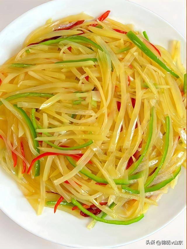 1、土豆丝擦丝,尖椒切丝,锅中放水,水开煮49秒捞出过凉水,控干水分。