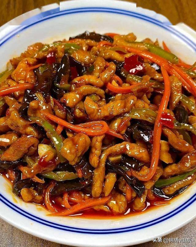 6. 倒入炒好的里脊丝,再加入调好的鱼香汁,翻炒至汤汁浓稠,最后加入适量鸡精调味即可。