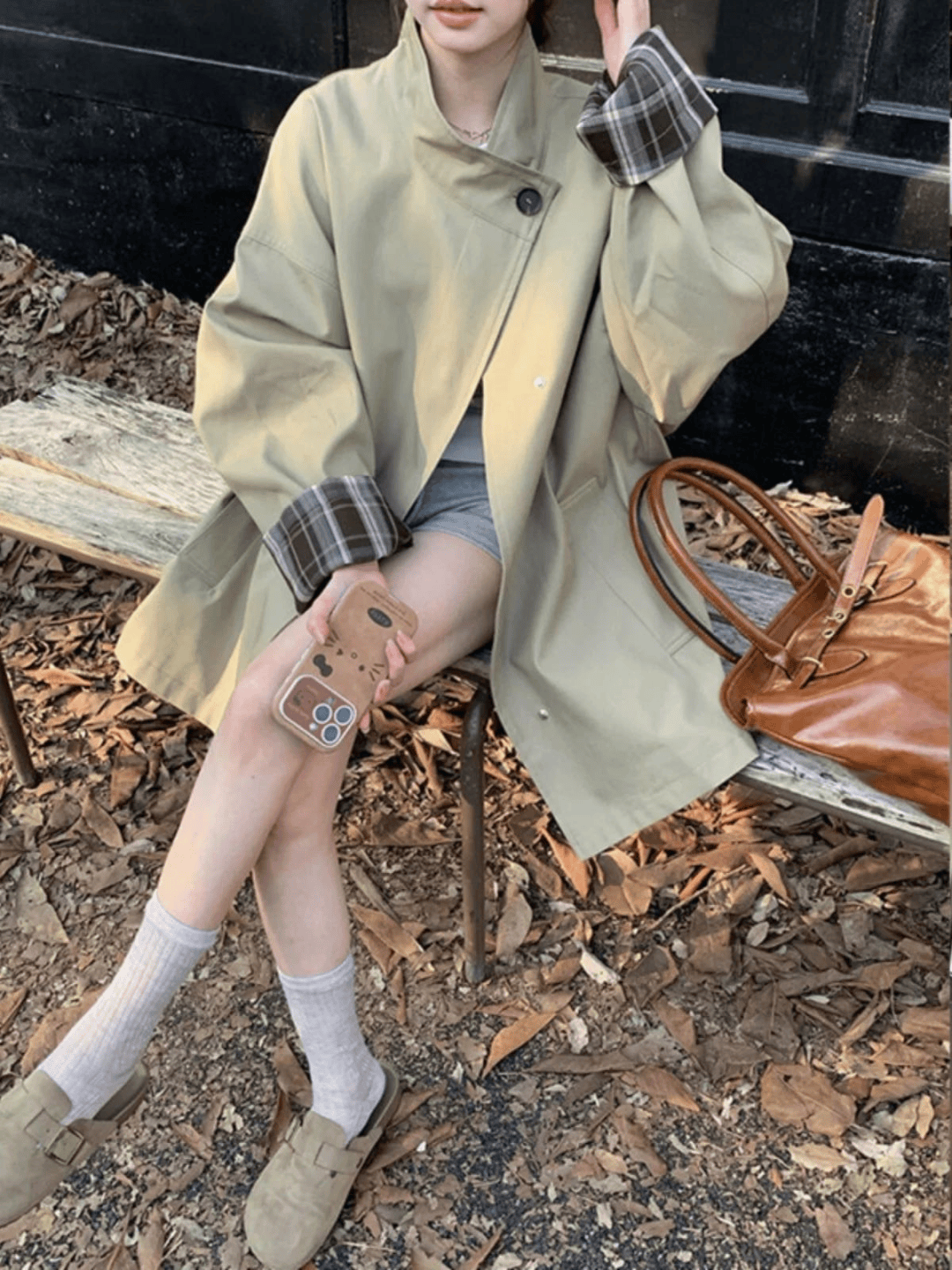 不要千篇一律的棕色,卡其绿的复古英伦风,简单的版型,穿出大牌即视感!
