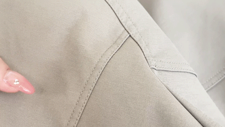 特殊高支高密结构,布料是很瓷实的,这种面料制成的风衣垂坠感好,不易皱,打理起来轻轻一拍就平整了。
