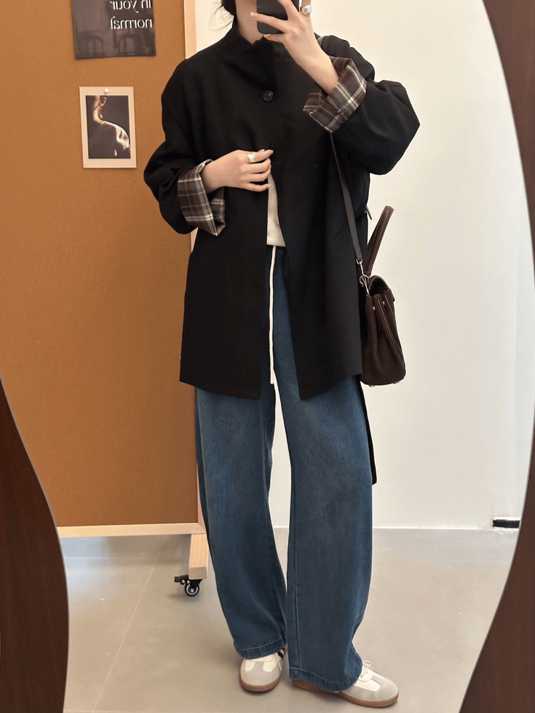 袖口翻过来就是格纹,不会单调,非常喜欢这种恰到好处的小设计。