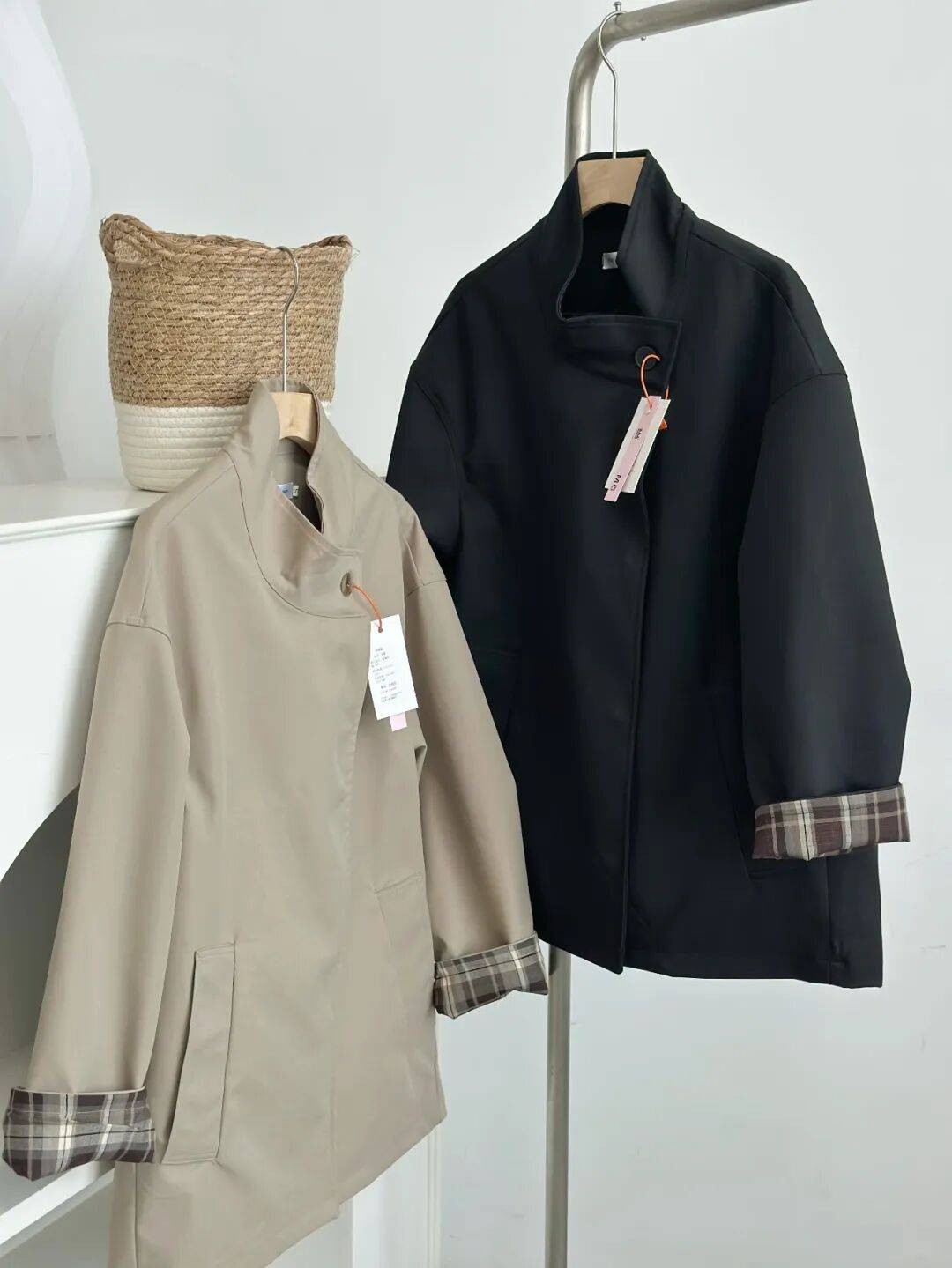 落肩设计,慵懒松弛,经典A型廓形。敞开穿,系扣穿,都各有风格~