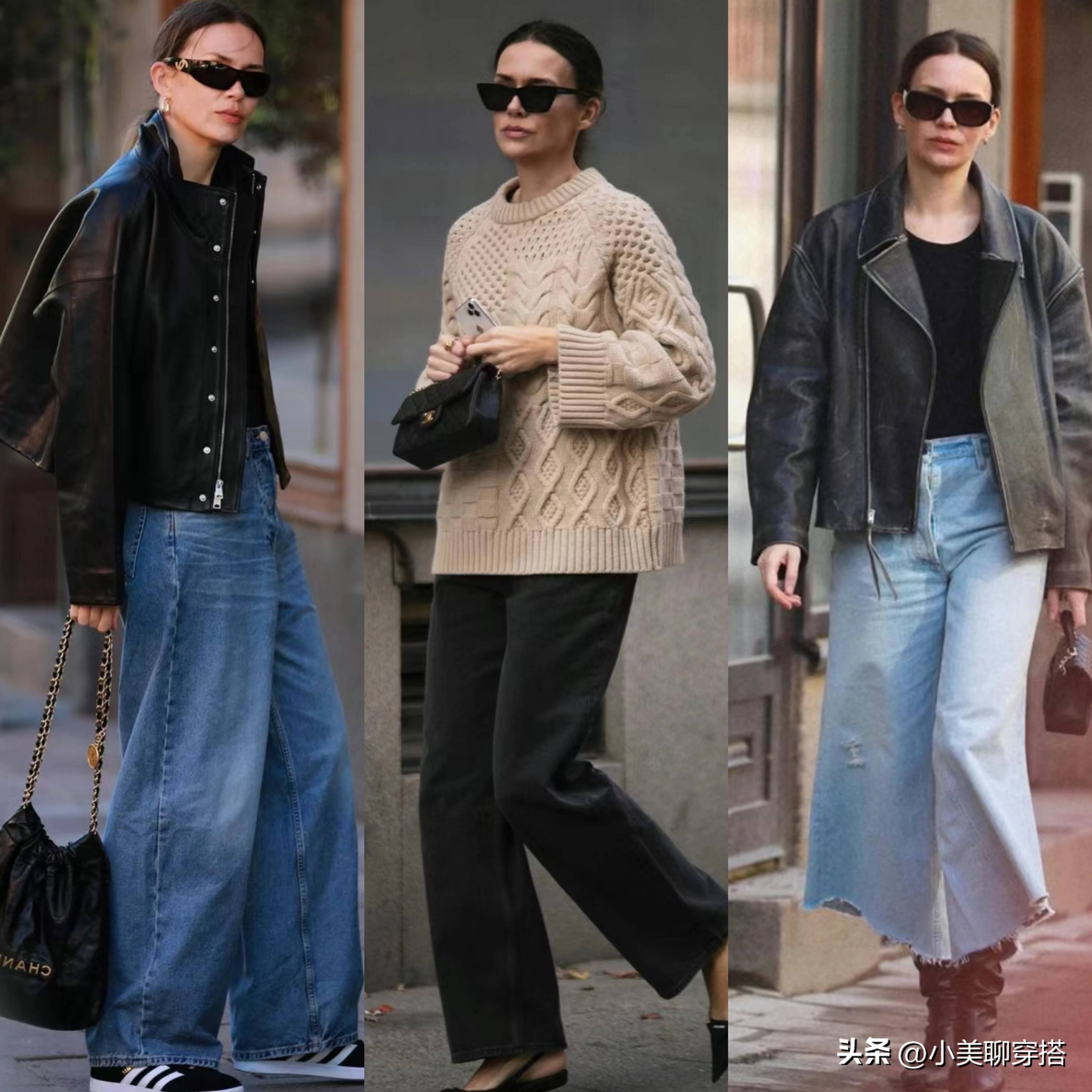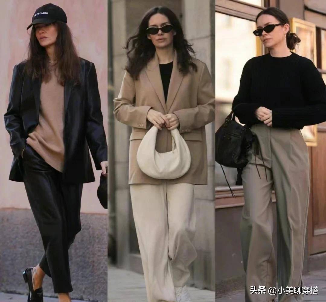 黑色的廓形西装,选择黑色阔腿裤来穿,单一的配色往往会带来高级感,而且不用费力。