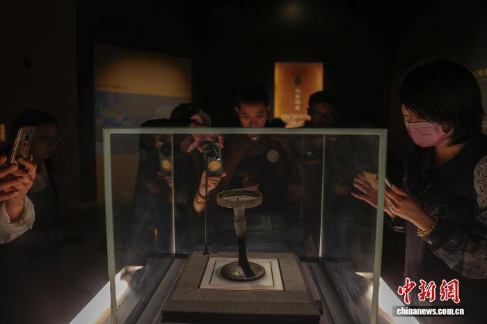 游客在南昌汉代海昏侯国遗址博物馆参观展出的“南昌”铭文青铜灯(资料图)。刘力鑫 摄