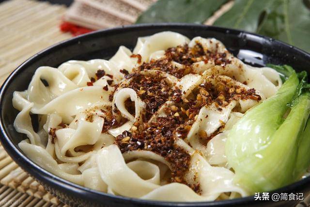 宽如裤带的面条煮好捞进碗,铺上厚厚的秦椒辣椒面、葱花、蒜末,滚烫的菜籽油“滋啦”一浇,香气瞬间直冲天灵盖,连隔壁小孩都能馋哭。