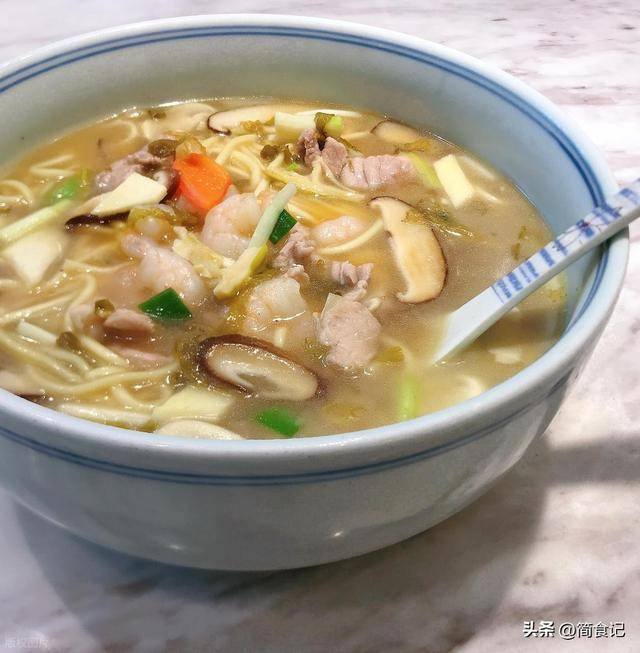 老杭州吃面讲究“宽汤硬面重青”,汤要宽,面要筋道,葱花要多,一口下去,既有雪菜的鲜、笋片的脆,又有瘦肉的香,清淡不油腻,妥妥的江南风味。