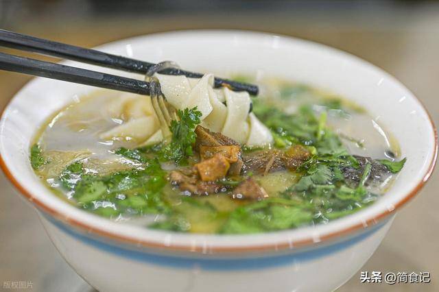 奶白的羊骨汤要熬够数小时,骨头炖得酥烂,汤汁醇厚浓郁,手工拉制的烩面片薄而有韧性,滑进喉咙的瞬间全是鲜香。