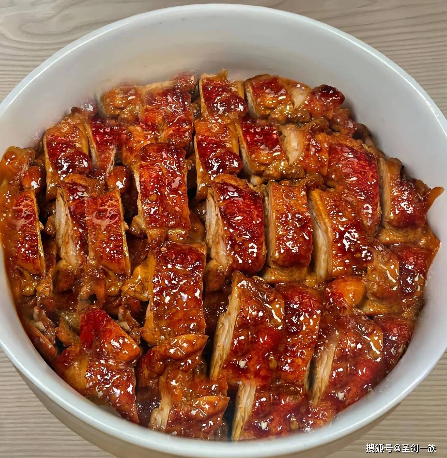 4.将酱汁缓缓地倒入锅中,煮至它变得浓稠的状态,如此这般,便能让每一块鸡肉,都均匀地裹上那一层光泽。
