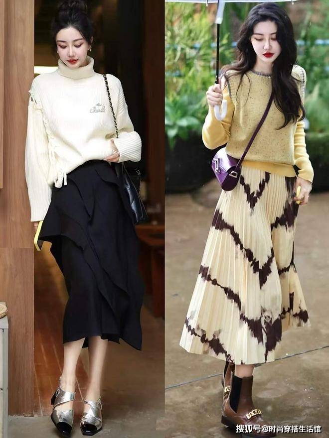 这种搭配融合了温暖的毛衣和飘逸的半身裙,不仅展现了女性的优雅气质,还巧妙地实现了保暖与时尚的完美结合。在这个季节,我们不必再为选择温暖和时尚而犹豫不决,因为“毛衣+半身裙”的搭配已经为我们提供了最佳答案。