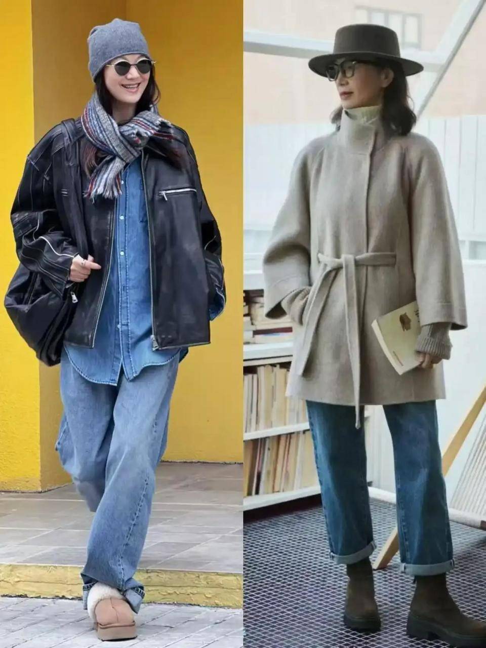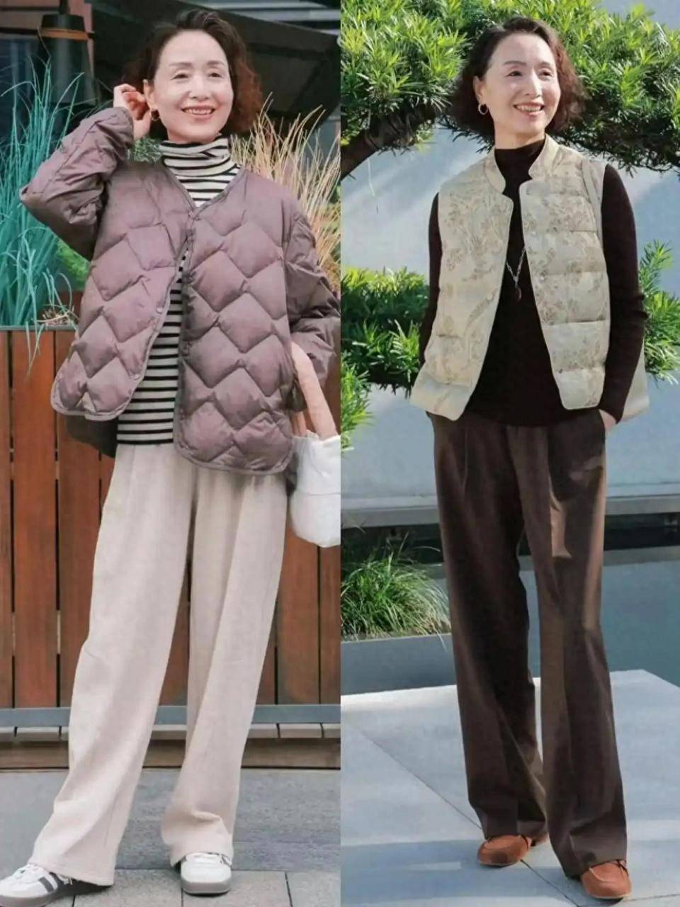 确实,有的时候会穿与不会穿区别确实很大。例如上面这位素人博主,选择一件棉服,内搭针织衫,加上一条挺阔有型的直筒长裤,脚穿德训鞋、乐福鞋,简约干练又减龄。