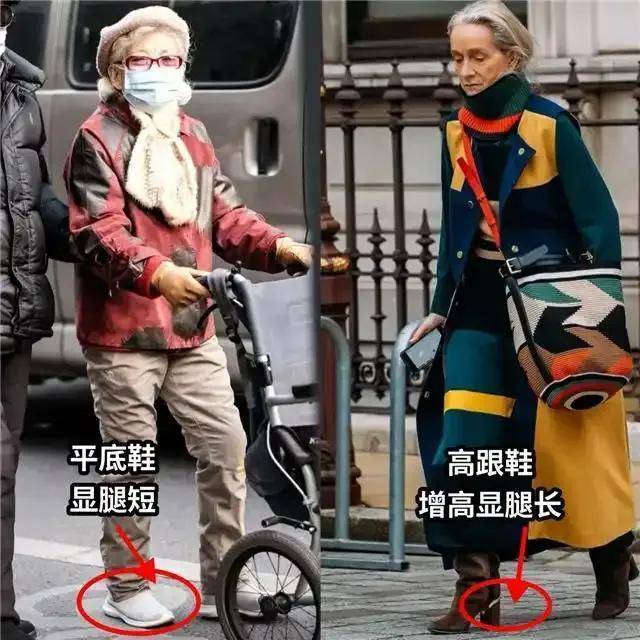 我们穿鞋子的时候,尽量带点鞋跟,不要直接选择平底的鞋子。如果再加上裤子皱皱巴巴的,就很容易显腿短。