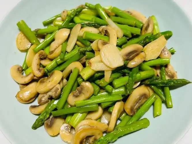 吃法推荐:清炒芦笋保留本味,芦笋去老根斜切,焯水1分钟后捞出;热锅放少许橄榄油,放蒜末爆香,倒入芦笋翻炒2分钟,加少许盐调味即可,脆嫩不腻;也能和虾仁同炒,虾仁的优质蛋白搭配芦笋的硒,营养翻倍,适合作为午餐配菜。