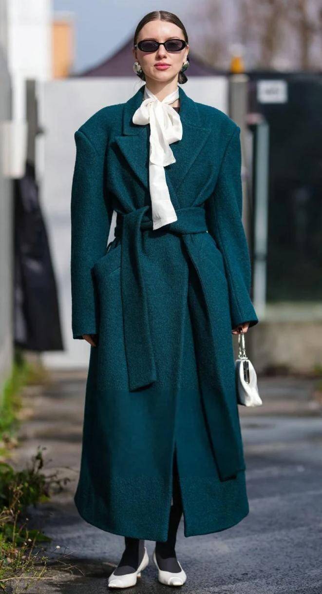 想要更出彩,不妨试试蓝色、绿色等彩色飘带衬衫,哪怕外套和下装都是深色,一抹亮色也能瞬间点亮造型,减龄又松弛,妥妥的点睛之笔。