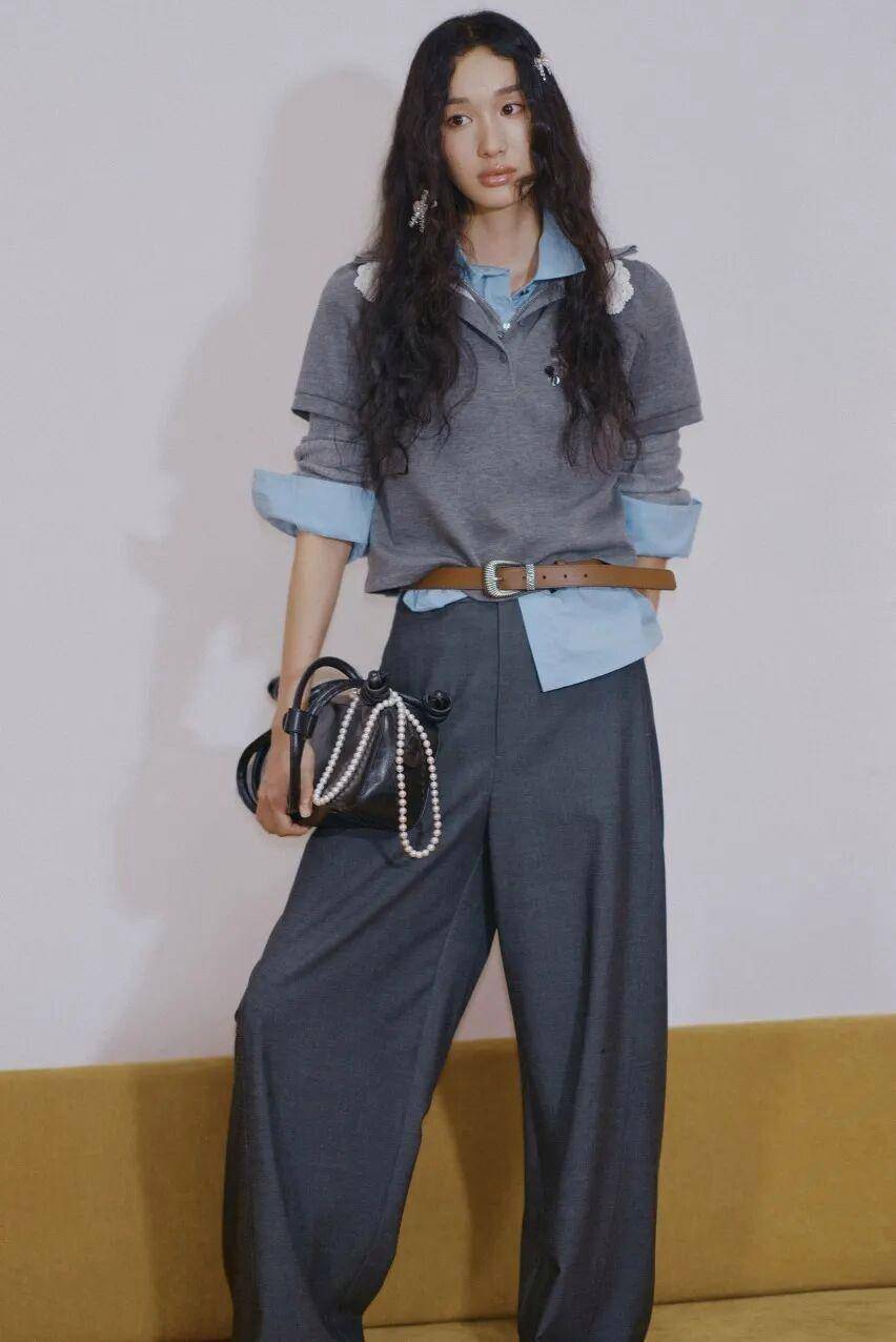 作为大衣内搭,蓝色衬衫的百搭性堪称无敌,无论搭配驼色、黑色、灰色还是米白色大衣,都能完美融合,在厚重的冬日搭配里,悄悄透出一份不动声色的品位。