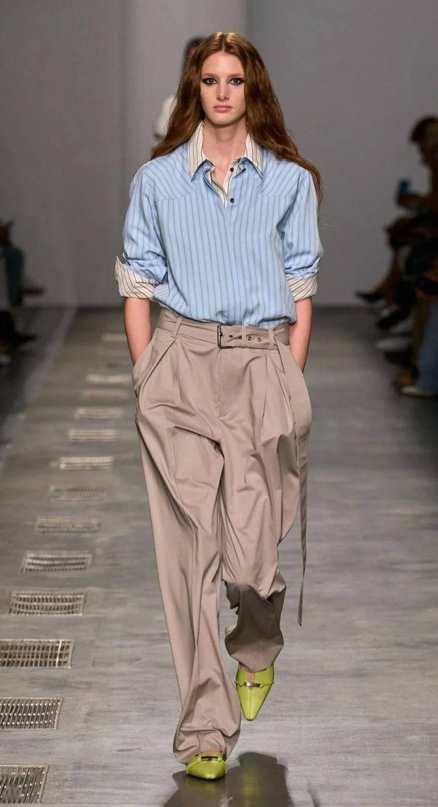 这里的蓝色衬衫,不只是纯蓝款,条纹蓝衬衫、丹宁牛仔衬衫也囊括其中,都是时尚圈永不过时的经典,智性知识分子风拉满。
